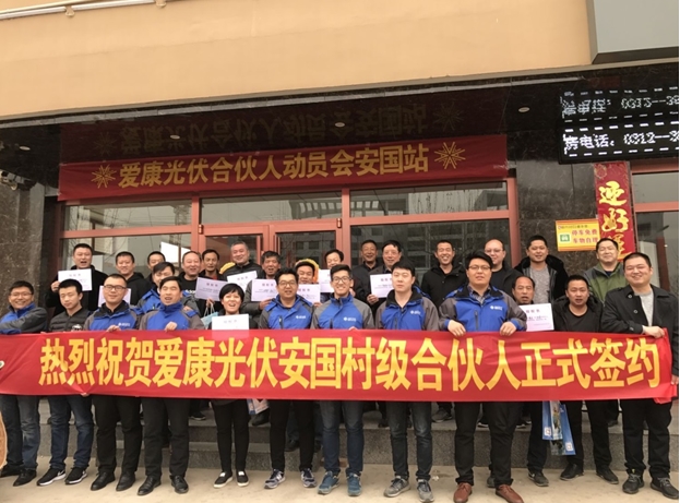 據了解,在安國,基本每個月都有家庭安裝光伏電站,但當地老百姓的品牌意識不強,安裝的多為拼裝產品,一旦產品出現質量及發電量問題,總是無人解決,讓老百姓苦不堪言。而愛康五好家電站的出現解決了百姓的燃眉之急,完善的售后服務讓用戶后顧無憂。3月14日,愛康綠色家園品質中國行暨光伏村級合伙人動員大會—安國站成功開展。通過對愛康品牌、產品的、金融服務及售后服務等多方面系統講解,成功簽約15位村級合伙人,并現場訂購60余套10KW愛康五好家電站。