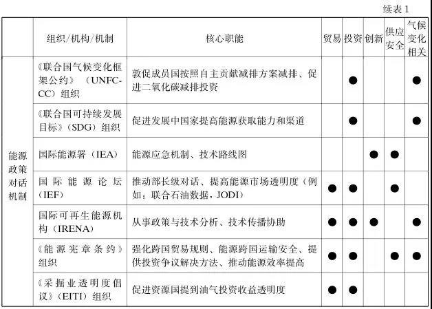 改革開放前,中國處于所有國際能源機制之外。改革開放后,中國逐步融合全球經濟,開啟了參與全球能源治理的進程。1983年,中國成為世界能源理事會(WEC)成員。這一時期,中國不太熟悉國際規則,參與全球能源機制持謹慎的態度,以探索、學習國際規則為主。20世紀90年代以來,隨著中國經濟在全球的擴展,中國開始積極參與全球能源治理。1991年,中國加入亞太經濟合作組織能源工作組。隨后,還開展了區域能源合作機制。不過,該時期中國參與國際能源治理并不深入,象征意義大于實際意義。進入21世紀,隨著全球化進一步深入,中國開始嘗試更加主動、深入地為全球能源問題作出切實的貢獻,由積極參與轉變為主動影響,通過擔任成員國、聯盟國、對話國、觀察員國等,與IEA、OPEC、國際能源論壇、能源憲章、國際可再生能源署和國際原子能機構等開展了多種形式的合作,并在一些重大能源議題上發揮重要作用。特別是,中國通過二十國集團、金磚國家、亞太經合組織和上海合作組織等,在一些重大能源議題上成為實質推動者。