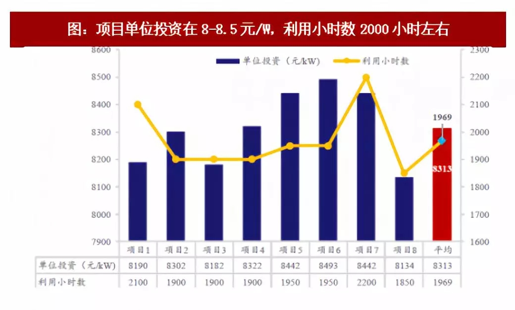 ▼圖:項目單位投資在8-8.5元/W,利用小時數2000小時左右