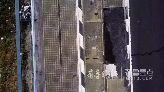 近距離看,可見快車道上破損的光伏電池較多,而應(yīng)急車道則問題不大。目前部分電池路面正在更換施工中。