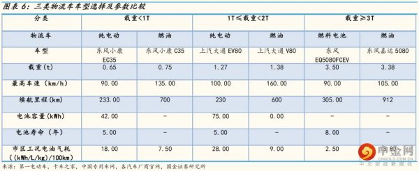 燃料電池物流車具備高載重、長續(xù)航和加氫快等優(yōu)勢,適用于城市支干線運(yùn)輸和城際運(yùn)輸場景。在環(huán)保日益嚴(yán)格情況下,傳統(tǒng)中重卡面臨路權(quán)問題,燃料電池物流車是其最佳替代者。純電動(dòng)物流車具備使用成本低優(yōu)勢,但是因?yàn)槟芰棵芏鹊停m(xù)航和載重難以兼具,而且面臨充電時(shí)間長問題,因此適合于短途運(yùn)輸場景,可以在城市內(nèi)配送場景替代傳統(tǒng)燃油物流車。下面我們根據(jù)純電動(dòng)和燃料電池物流車性能指標(biāo)詳細(xì)分析: