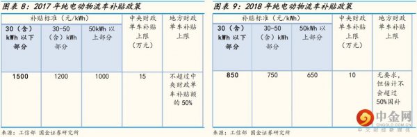 購車補(bǔ)貼:純電動(dòng)車補(bǔ)貼退坡明顯,燃料電池車輛保持不變。國家和各省市針對(duì)純電動(dòng)物流車提供一次性購車補(bǔ)貼,二者可疊加享受。按照2018年國家最新的補(bǔ)貼標(biāo)準(zhǔn),新能源專用車實(shí)行分段補(bǔ)貼,30kWh以下部分補(bǔ)貼850元/kWh,下調(diào)幅度超40%;30-50kWh部分補(bǔ)貼750元/kWh;超過50kWh部分補(bǔ)貼650元/kWh,補(bǔ)貼上限由15萬下調(diào)到10萬元,下調(diào)幅度33%。燃料電池車輛對(duì)比2017年政策補(bǔ)貼不退破,但技術(shù)要求更加細(xì)化。按照車型不同,給予不同程度的補(bǔ)貼,總體而言遠(yuǎn)高于純電動(dòng)物流車。我們測算時(shí)采用地補(bǔ)為國補(bǔ)的0.6倍,實(shí)際前各地對(duì)于燃料電池物流車補(bǔ)貼比例各異。