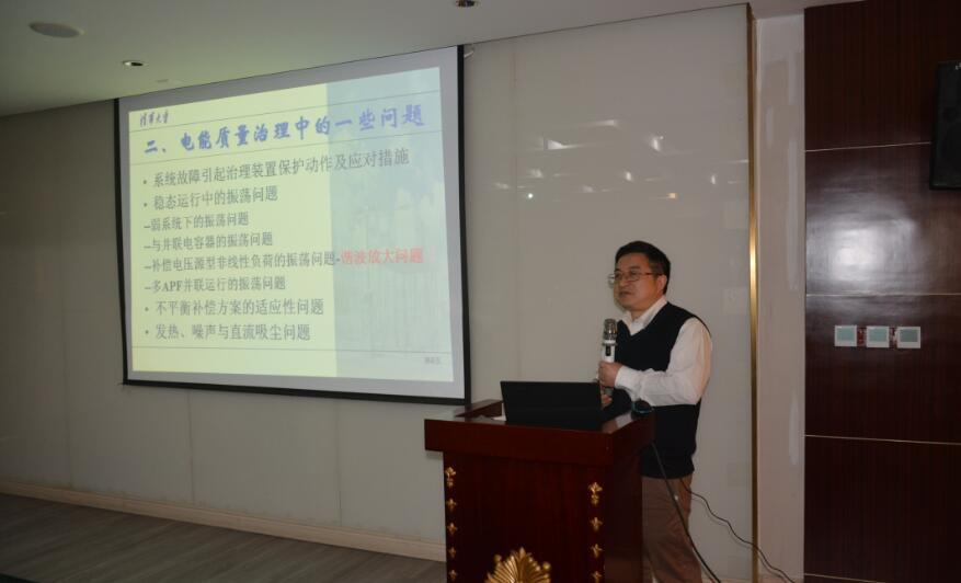 會(huì)議伊始,由清華大學(xué)柔性輸配電系統(tǒng)研究所所長(zhǎng)姜齊榮老師現(xiàn)場(chǎng)致辭,并作《電能質(zhì)量治理現(xiàn)狀及電能質(zhì)量新進(jìn)展》的報(bào)告,姜老師對(duì)電能質(zhì)量治理現(xiàn)狀、電能質(zhì)量治理中存在的哪些問題進(jìn)行全面的解析與精彩發(fā)言,強(qiáng)調(diào)了配網(wǎng)動(dòng)態(tài)電壓過程中的穩(wěn)定性及操作性,不平衡補(bǔ)償方案的適應(yīng)性及解決方案,保證產(chǎn)品在各種環(huán)境下適應(yīng)能力和安全性。最后他特別提醒,電能質(zhì)量問題要引起高度重視,要正確解決電能質(zhì)量補(bǔ)償裝置引起的震蕩問題,降低損耗與噪音,綜合電能質(zhì)量治理裝置是未來(lái)的發(fā)展方向。