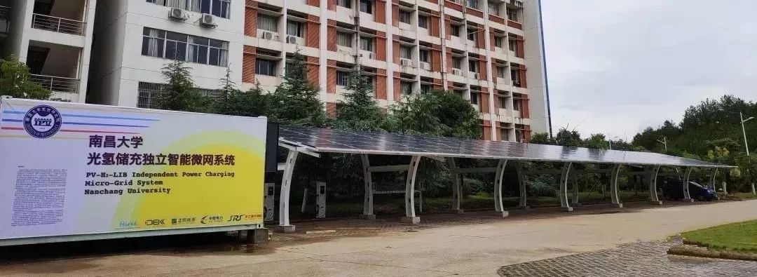 南昌大學光氫儲充獨立智能微網系統是由光伏車棚、氫燃料電池、鋰離子電池組成的完全不依賴于電網為電動車輛充電的獨立清潔電力系統,為南昌大學“新材料技術”世界一流學科建設項目之一,由南昌大學光伏研究院承擔。