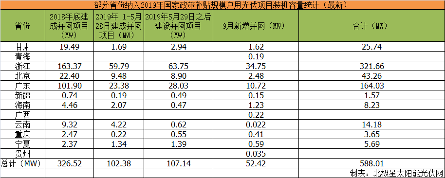 近日,共計12各省市發布9月戶用名單,共計新增52.42MW。其中浙江新增戶用裝機量最多,占66.3%,其次是廣東,新增10.72MW,剩余省份均在2.5MW以下。