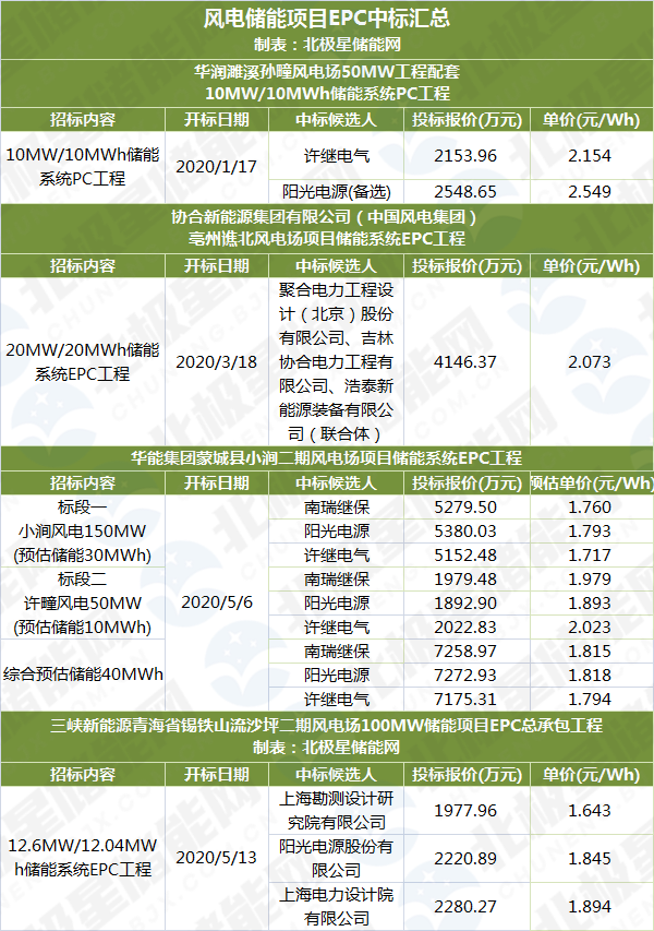2020年初,多個風(fēng)電配套儲能項目陸續(xù)開標(biāo),據(jù)北極星儲能網(wǎng)統(tǒng)計,同樣都是1C的電池儲能成本價格從1月份最高2.549元/Wh到5月已經(jīng)降到最低1.643元/Wh,一個季度儲能成本下降近三成。