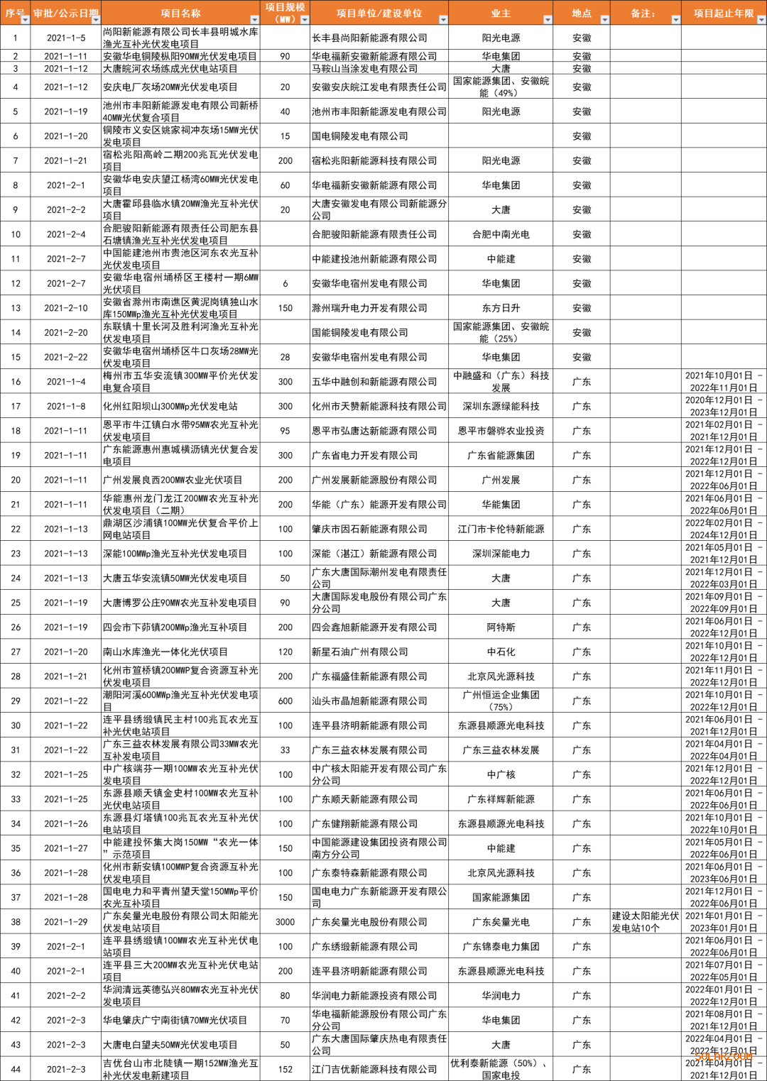 2020年華潤浙江500MW灘涂光伏電站入圍補貼名單,之后與東營財金一起在山東備案了800MW的漁光項目,進(jìn)入2021年僅兩個月時間,華潤又陸續(xù)在山東、湖北、廣東、廣西備案了超過2GW的光伏電站項目。此前光伏們了解到,華潤正計劃大幅提高“十四五”新能源投資力度,其初步規(guī)劃是五年完成40GW的風(fēng)、光投資。
