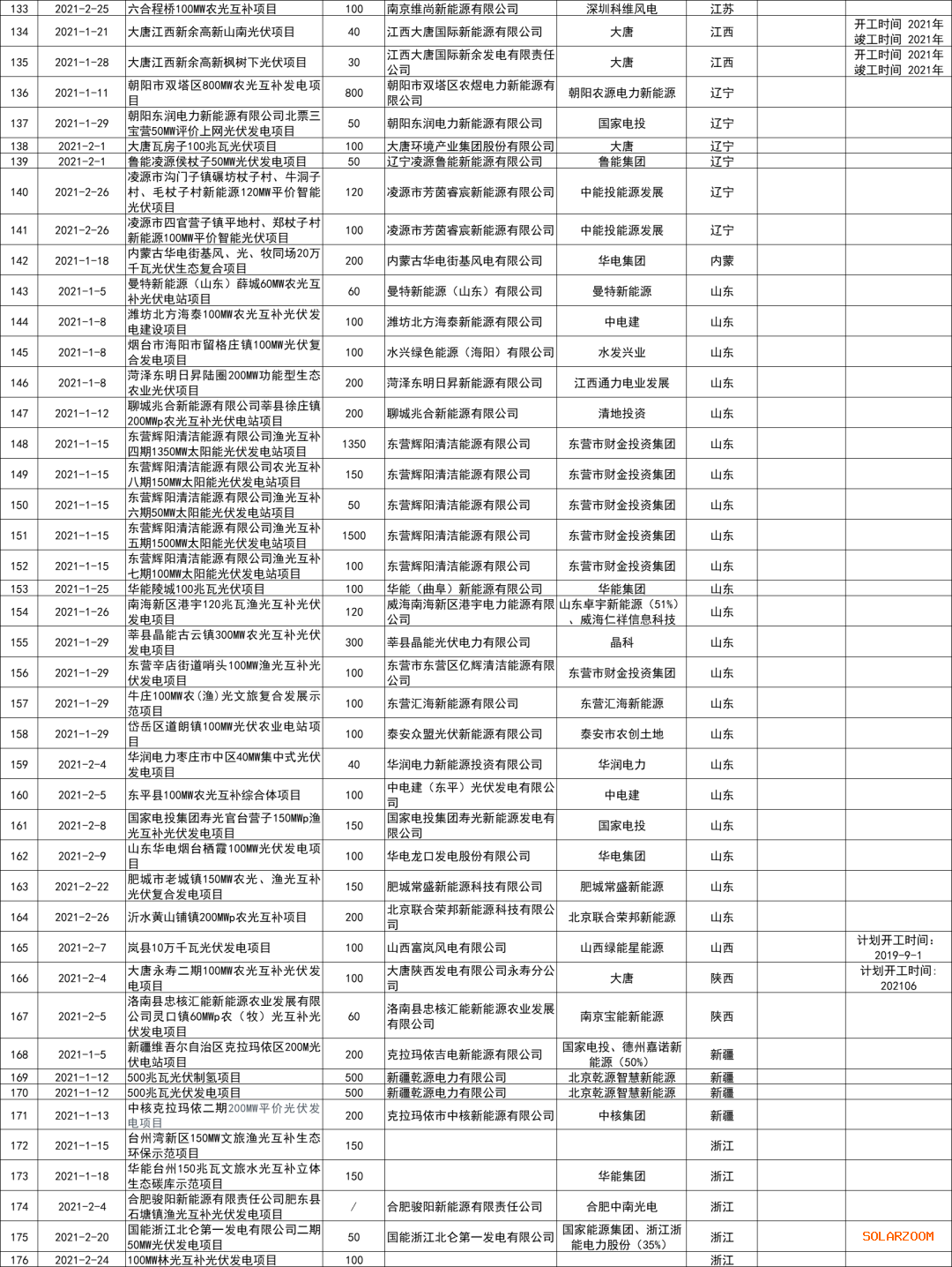 備注:表中僅列出部分業(yè)主項目名單,備案項目統(tǒng)計截止至2021年2月末。上述統(tǒng)計項目來源于項目審批監(jiān)管平臺,因項目名單眾多,難免有疏漏,上述表格不做排名依據(jù),僅供讀者參考