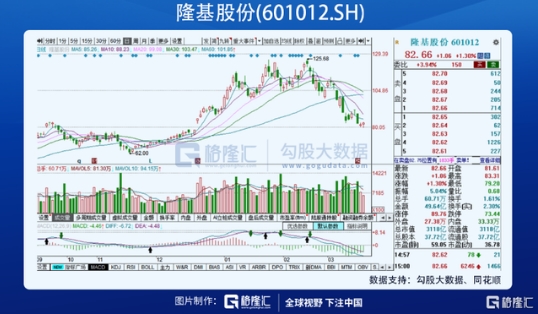 光伏中三劍客,隆基周一跌停,兩天時間表現依舊不溫不火;隆基從最高點下來,跌近34%。