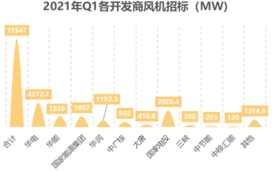 根據能見「風電之聲」不完全統計,今年第一季度,中國風機招標總量達到15547MW,作為平價時代的第一個傳統淡季,這一數據強勢打消了籠罩在風電從業者頭上的最后一抹疑云。