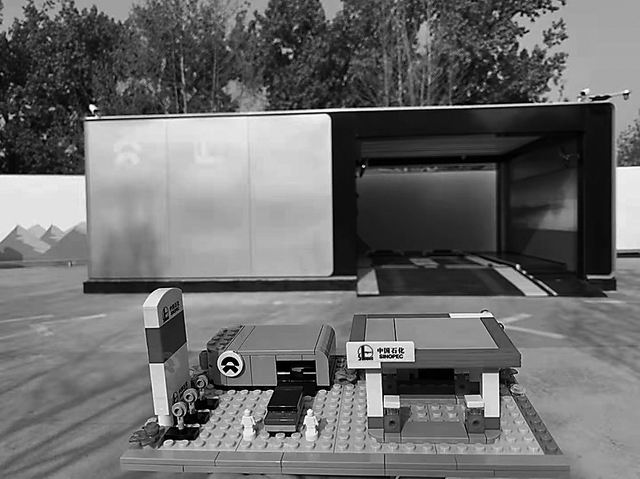 車友Frank創(chuàng)意制作的中石化蔚來換電站模型。