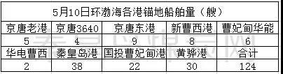 渤海九港錨地船舶量124艘(與4月30日相比減少了19艘),場存2384.7萬噸(與4月30日相比增加了152.3萬噸)。環(huán)渤海各港錨地船舶情況如下表: