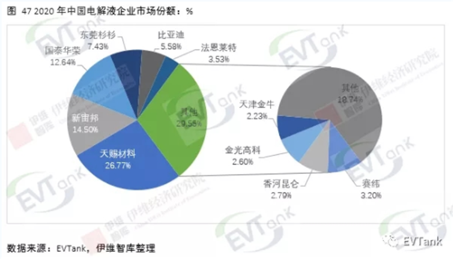 近日,研究機(jī)構(gòu)EVTank聯(lián)合伊維經(jīng)濟(jì)研究院共同發(fā)布了《中國(guó)鋰離子電池電解液行業(yè)發(fā)展白皮書(shū)(2021年)》,白皮書(shū)數(shù)據(jù)顯示,2020年全球鋰離子電池電解液出貨量達(dá)到33.4萬(wàn)噸,同比增長(zhǎng)24.6%,整體市場(chǎng)規(guī)模達(dá)到152.7億元。EVTank分析認(rèn)為,2020年全球鋰離子電池電解液出貨量的增長(zhǎng)主要來(lái)自于中國(guó)企業(yè)。