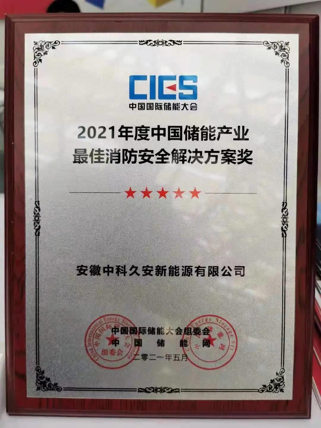 活動現場發布了2021年度中國儲能產業最佳消防安全解決方案獎項,安徽中科久安成功入選。