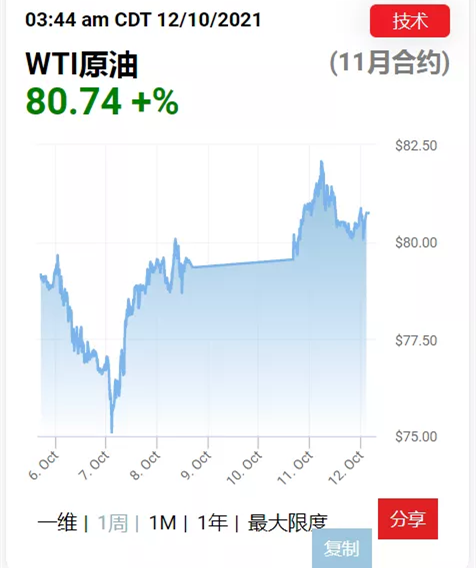 WTI紐約原油價格突破80美元大關,周一盤中一度飆升至每桶82.18美元,這是自2014年10月以來,紐約原油價格7年內達到的最高值。