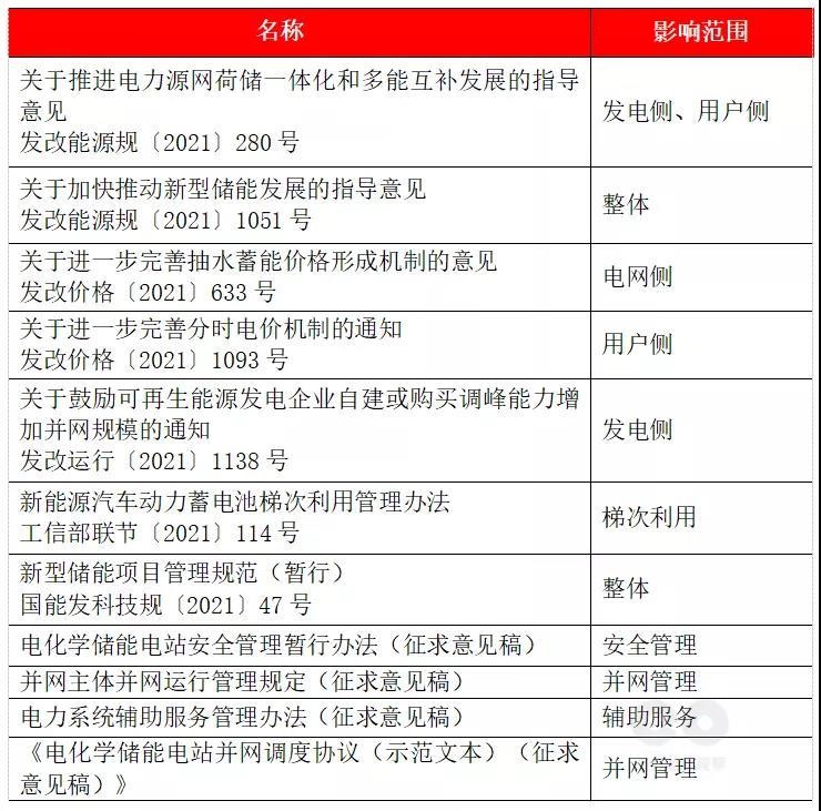 2021年部委層面出臺儲能相關政策