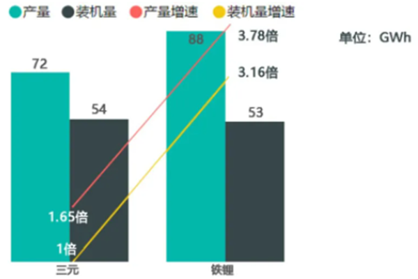 圖3 三元和磷酸鐵鋰的2021年對(duì)比