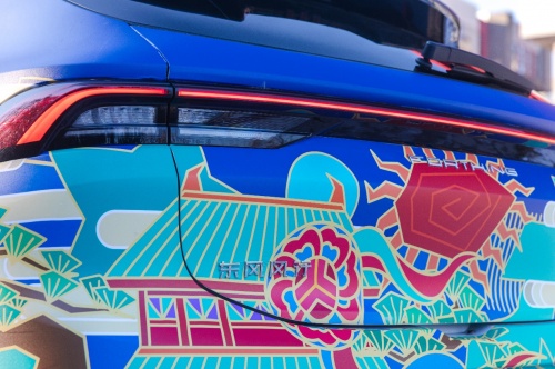 與行李箱比,尺寸更大、速度更快、足跡更遠的汽車,是更高階的媒介。“為故宮、敦煌、黃鶴樓等經典IP設計插畫的經歷讓我堅信,好的國潮作品,必須深入挖掘文化的精神內核,找到國潮與媒介的共同點,進行‘不違和’的再創作。”吳堯介紹說,在設計風行T5 EVO國風版時,他特別注重速度感、力量感和潮酷風格的打造,“既要符合汽車高速移動的特質,也要符合風行獨特的氣質。”