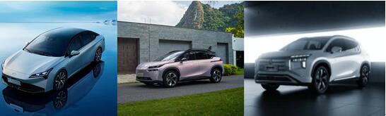 圖5:廣汽埃安S Plus、廣汽埃安V Plus、廣汽三菱阿圖柯AIRTREK(從左到右)
