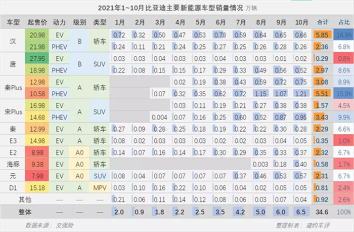 2021年比亞迪新能源銷量回顧