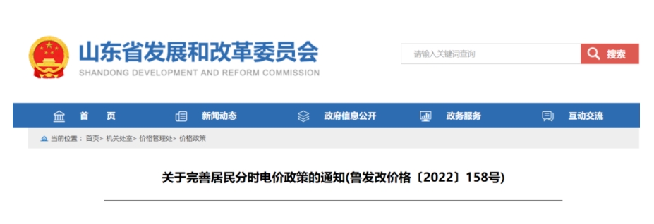 日前山東省發(fā)改委發(fā)布關(guān)于完善居民分時電價政策的通知(魯發(fā)改價格〔2022〕158號),通知指出2022年5月1日起執(zhí)行居民家庭分時電價政策。