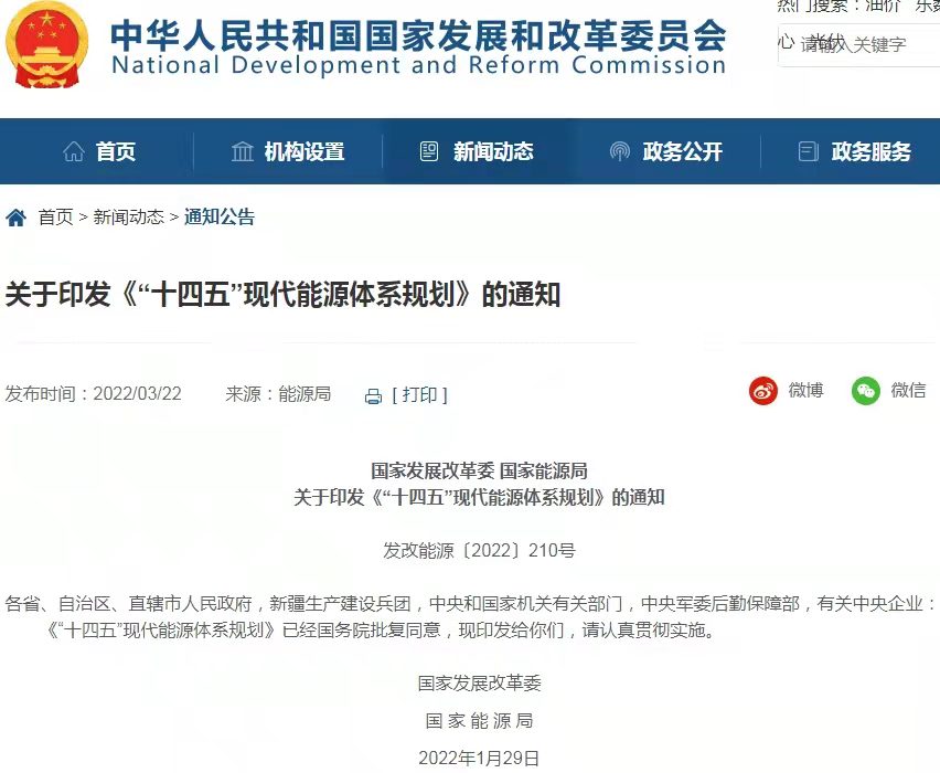 國際能源網/風電頭條(微信號:wind-2005s)獲悉,3月22日,國家發展改革委 國家能源局發布關于《“十四五”現代能源體系規劃》的通知。
