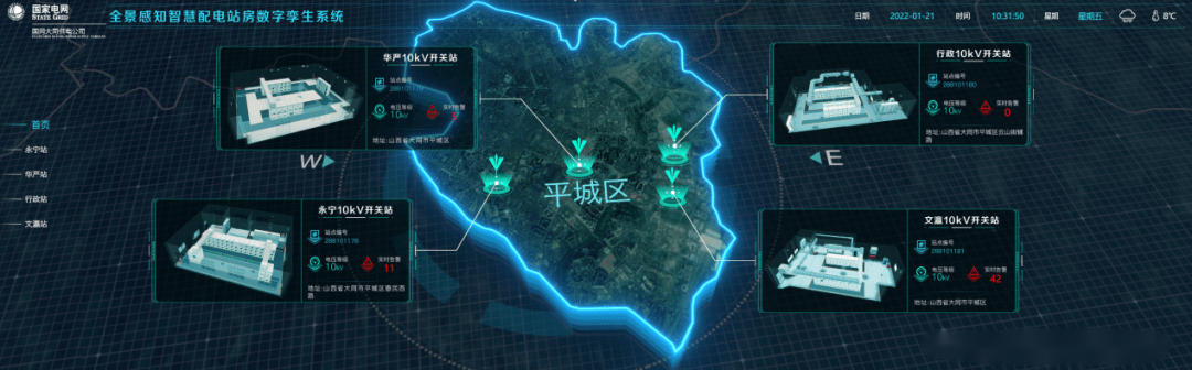 2021年8月,為助力山西省電力公司推進電網數字化轉型,建設可復制的數字化、遠程運維的智慧配電房樣板,國網大同供電公司與平高集團聯合開展全景感知智慧配電站房示范項目建設。根據大同供電公司配電網運維現狀,首批選取永寧、華嚴、行政、文瀛等4座10kV配電站房進行試點建設。項目通過在試點開關站房內集成智能巡檢機器人、煙感、智能門禁、溫濕度監測、風機照明控制、視頻監控等智能監測與控制設備,在控制中心部署平高自主開發的基于數字孿生的智慧站房云管控系統,實現站內設備、環境全面監控,將人工定期巡檢轉變為智能裝置常態化巡檢。