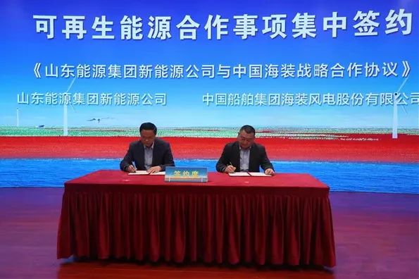 “作為風(fēng)電行業(yè)國家隊(duì),中國海裝將深入貫徹“30·60”戰(zhàn)略部署,以“踐行新發(fā)展理念,支撐新能源戰(zhàn)略”為使命,充分依托中船集團(tuán)海工裝備研發(fā)制造優(yōu)勢,堅(jiān)定不移實(shí)施“創(chuàng)新引領(lǐng),海陸并舉、向海圖強(qiáng)”的發(fā)展戰(zhàn)略,充分發(fā)揮行業(yè)引領(lǐng)作用。”中國海裝副總經(jīng)理(主持工作)溫劍波在致辭中表示。在隨后的簽約儀式中,溫劍波代表中國海裝分別與東營經(jīng)濟(jì)技術(shù)開發(fā)區(qū)黨工委委員、管委會(huì)副主任張玉明,山東能源集團(tuán)新能源有限公司總經(jīng)理李偉簽訂了合作協(xié)議。