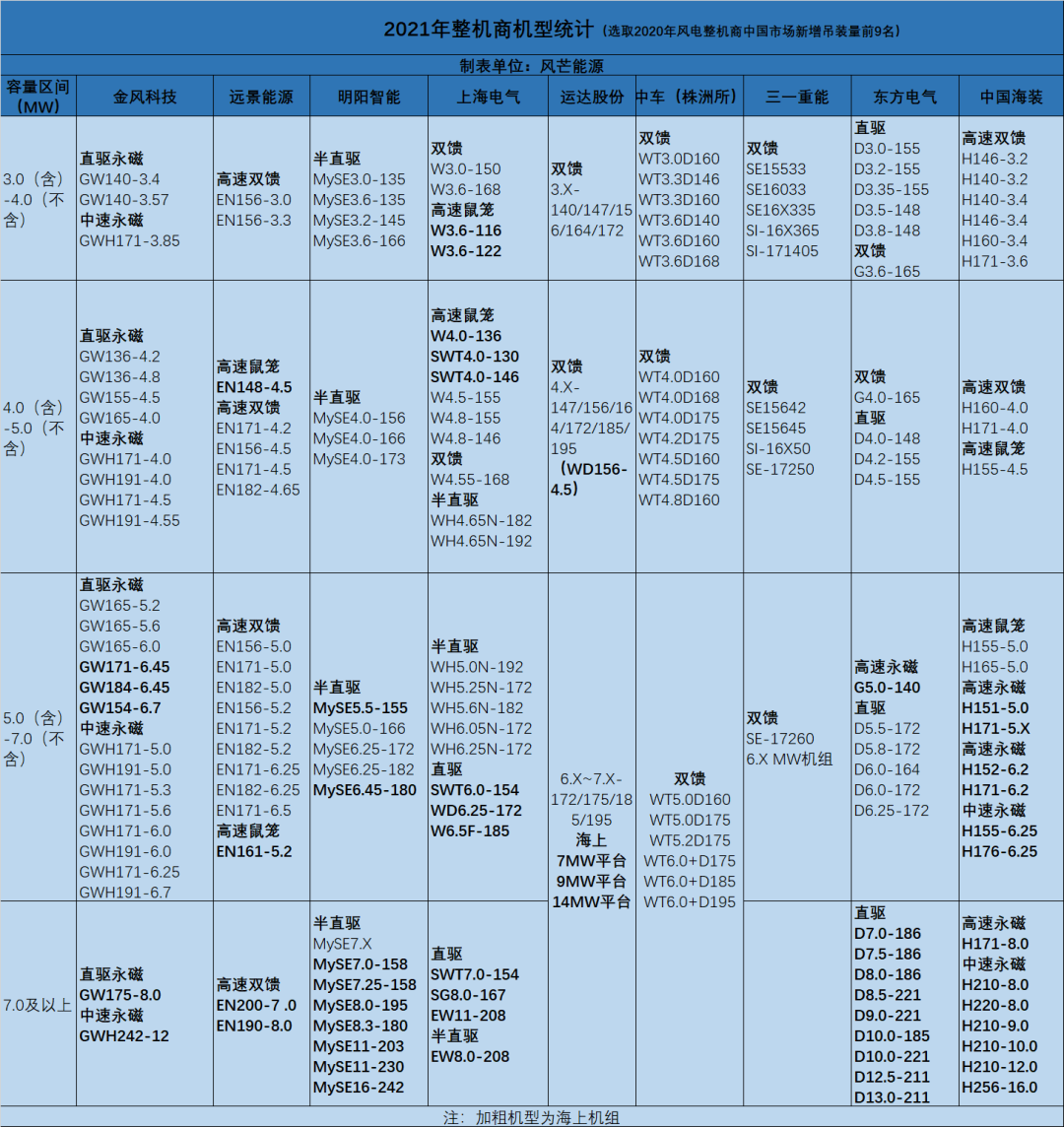 該圖所附機型及技術路線為去年風能展整理,不代表最新版,僅供參考