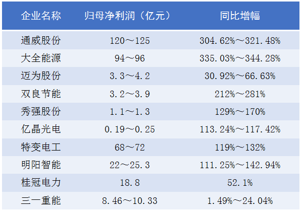 截至7月11日,風(fēng)電、光伏發(fā)電行業(yè)已有部分企業(yè)發(fā)布2022年上半年業(yè)績預(yù)增公告。在上半年財(cái)報(bào)正式發(fā)布之前,我們對(duì)企業(yè)已發(fā)布內(nèi)容進(jìn)行整理、對(duì)比,供參考。