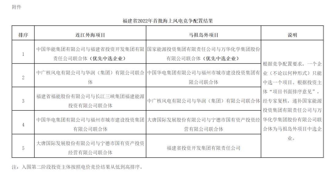 風芒能源獲悉,近日,福建發改委發布《關于福建省2022年海上風電首批競爭配置連江外海項目遞補中選資格的通知》。