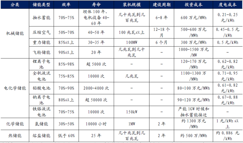 熔鹽儲能局限性:①成本較高:已投運(yùn)的裝機(jī)110MW配10小時儲能的新月沙丘熔鹽塔項(xiàng)目的總投資額約8億美元(約合人民54億元),據(jù)此計(jì)算投資成本在500萬/MWh左右,據(jù)《電化學(xué)與蓄熱儲能技術(shù)在可再生能源領(lǐng)域的應(yīng)用》測算,在不考慮能量損失的情況下熔鹽儲熱度電成本約0.443元/kWh,則在50%轉(zhuǎn)化效率的情況下度電成本約0.886元/kWh。②能量利用率較低:在換熱系統(tǒng)中高溫熔鹽與水換熱,產(chǎn)生水蒸汽,驅(qū)動渦輪機(jī)工作階段能量浪費(fèi)較多,效率較低。③熔鹽具有腐蝕性:熔鹽中含有的氯化鹽、碳酸鹽、硝酸鹽對熔融罐、管道等設(shè)備具有一定腐蝕作用。