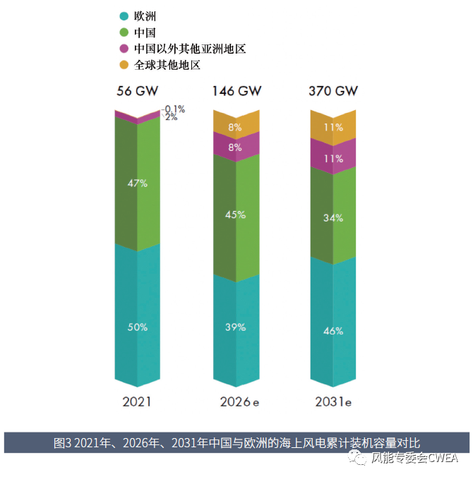 到2021 年年底,歐洲依然是全球海上風電累計裝機容量最大的地區。