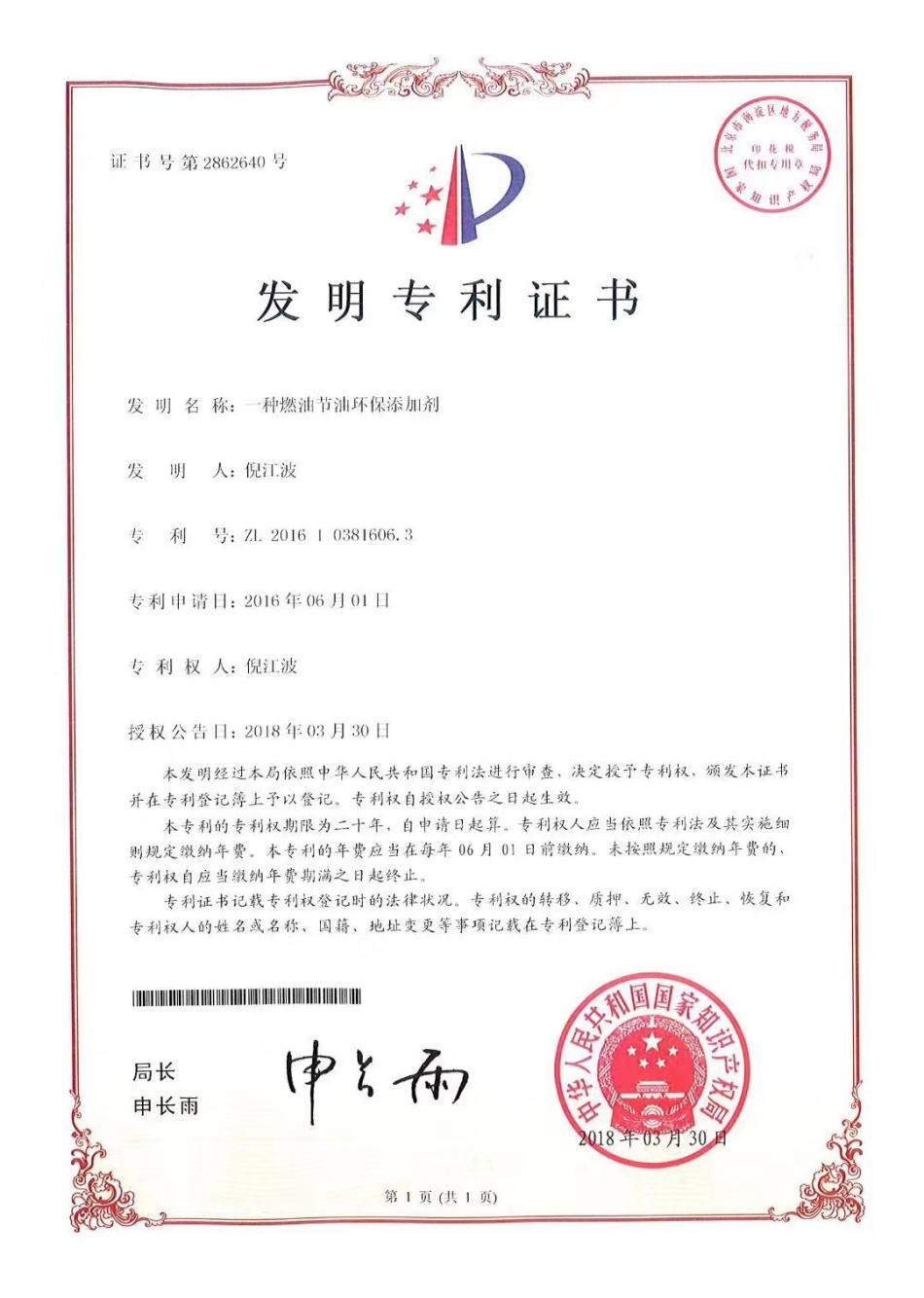 CPS-燃油助劑是天緣環保的核心產品,它是一種針對稠油、重(渣)油,柴油加工具有降凝、降粘,調節閃點的高新技術產品,是一種新能源和可再生能源技術環保節能清潔燃料油系列產品,是國內外可再生能源加工燃料油領域的領先技術。CPS—燃油助劑技術系統工程項目成果的轉化,離不開倪江波的辛勤努力,多年來,他帶領團隊,研發出了汽油、柴油和燃料油用助劑的兩大系列,其中CPS-1為車用汽油的節油環保助劑,CPS-2為柴油和燃料油的節油環保助劑。