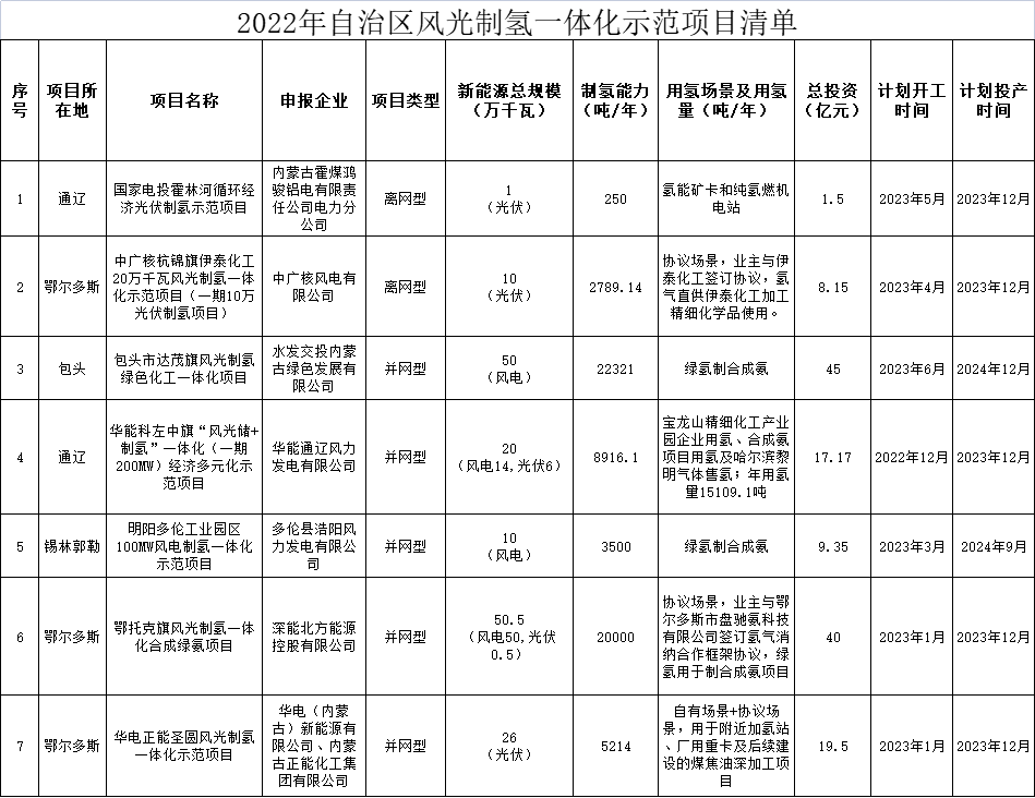 為深入貫徹習近平總書記關于內蒙古系列重要指示精神和《內蒙古自治區人民政府辦公廳關于促進氫能產業高質量發展的意見》(內政辦發〔2022〕15號)精神,有序推動全區風光制氫一體化示范項目建設,按照《內蒙古自治區風光制氫一體化示范項目實施細則(2022年版)》有關要求,我局組織評估并優選了7個風光制氫一體化示范項目(以下簡稱“示范項目”),經自治區人民政府審定同意批復實施?,F將有關事宜通知如下。