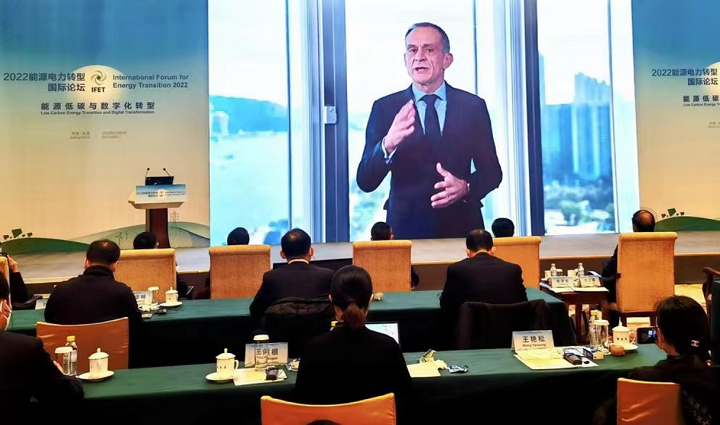 施耐德電氣集團(tuán)董事長兼首席執(zhí)行官趙國華(Jean-Pascal Tricoire)云出席2022能源電力轉(zhuǎn)型國際論壇