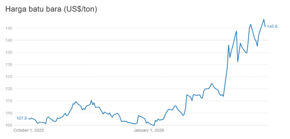 路孚特(Refinitiv)數(shù)據(jù)顯示, 周二(3月31日)交易日,全球動(dòng)力煤基準(zhǔn)洲際交易所(ICE)紐卡斯?fàn)柮禾科谪洿卧陆桓詈霞s交易價(jià)格收于每噸146.5美元,由前一交易日的高點(diǎn)148.6美元下降2.02%。這一下降也結(jié)束了前期連續(xù)三天的上漲趨勢(shì),前三天價(jià)格上漲累計(jì)幅度達(dá)到了8%。