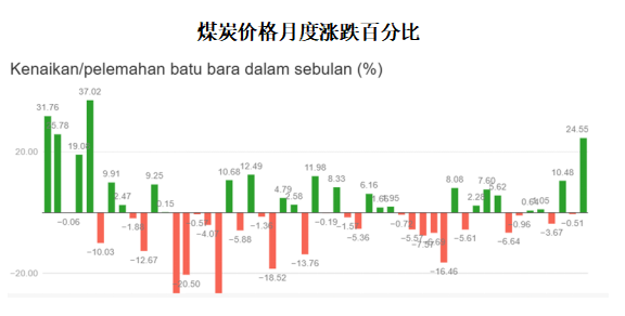 煤炭?jī)r(jià)格月度漲跌百分比