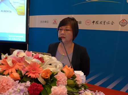 在上午的會(huì)議中,來自加拿大駐華大使館的商務(wù)參贊蔡淑惠對(duì)加拿大艾伯塔省的能源資源分布、儲(chǔ)量、開發(fā)現(xiàn)狀以及具體投資項(xiàng)目進(jìn)行了介紹。