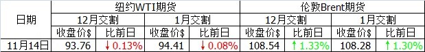 美國(guó)能源信息署當(dāng)日公布的截至11月8日的原油庫(kù)存比前一周增加260萬(wàn)桶,大幅超過路透社之前增加100萬(wàn)桶的預(yù)計(jì)。受這一利空影響,雖然有耶倫表態(tài)的積極支撐,但紐約WTI油價(jià)最終收跌。