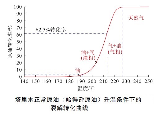 筆者近期通過大量原油裂解金管模擬實驗發現,原油的熱穩定性很大程度上受控于原油的組成;塔里木原油裂解實驗和地質推演結果證實,受控于原油性質和該盆地特殊的熱史條件,塔里木正常原油完全裂解的溫度門限可延伸至近230℃,深度可達6000m以上。