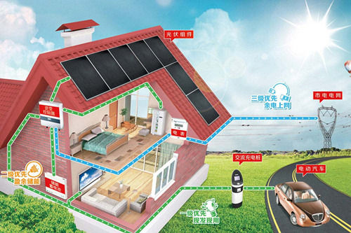 漢能薄膜太陽能戶用發電系統將高性能的太陽能電池組件集中安裝在屋頂上,經過串并聯后組成太陽能電池方陣。太陽能電池方陣吸收太陽光并產生直流電,經過逆變器后轉化為可供生活使用的交流電,剩余的電能可以儲存在蓄電池中。蓄電池充滿之后,剩余電能還可以上傳至電網中,獲得相應的電價收入。漢能認為,未來這種“自發自用,余電上網”的分布式光伏發電將是人們主要的能源使用形式。