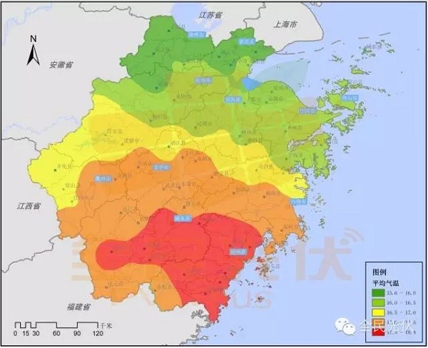浙江位于我國東部沿海,處于歐亞大陸與西北太平洋的過渡地帶,該地帶屬典型的亞熱帶季風氣候區。氣候總的特點是:季風顯著,四季分明,年氣溫適中,光照較多,空氣濕潤,雨熱季節變化同步。浙江年平均氣溫15~18℃,全省年平均雨量在980~2000毫米,年平均日照時數1710~2100小時。