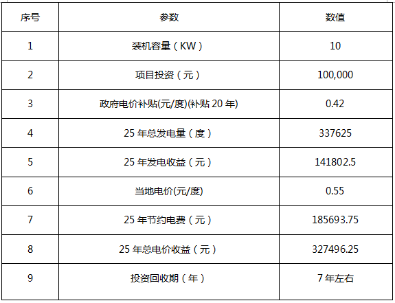 10KW光伏發電項目分析(假定發電量100%自發自用)