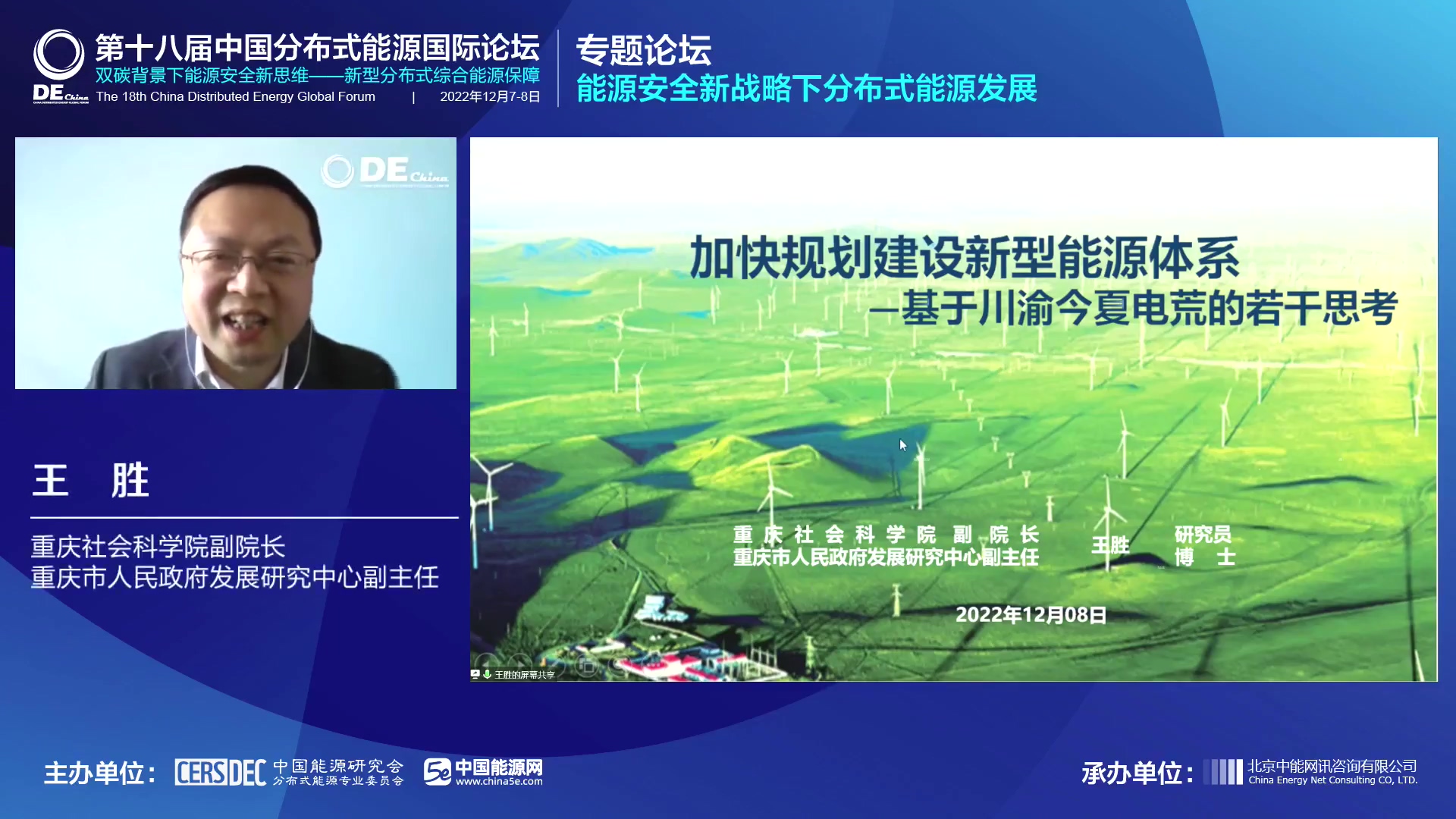 在“雙碳”背景下分布式能源領(lǐng)域貫徹新發(fā)展理念,以“雙碳背景下能源安全新思維——新型分布式綜合能源保障”為主題的“第十八屆中國分布式能源國際論壇”于2022年12月8日在北京采用線上的形式召開。本次論壇旨在搭建分布式綜合能源領(lǐng)域的交流和對話平臺,聚焦在新型分布式綜合能源保障,系統(tǒng)分析分布式綜合能源發(fā)展面臨的問題和挑戰(zhàn),從而提出碳中和目標(biāo)下分布式綜合能源發(fā)展路徑建議。本屆論壇邀請政府相關(guān)部門、科研院所、國內(nèi)外企業(yè)、行業(yè)組織等權(quán)威學(xué)者、專家和企業(yè)人士參會,共同探討新趨勢下行業(yè)發(fā)展和突破之道。 詳情請點擊第十八屆中國分布式能源國際論壇兩場先導(dǎo)專題論壇成功舉辦