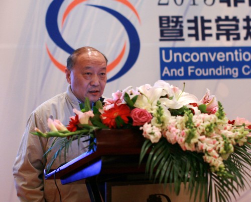 韓曉平:我們選擇今天這個日子來成立非常規油氣聯盟,是有特殊意義的。在座的誰知道今天這個日子對石油人來說有什么特殊的意義?今天是2013年11月15日,1970年11月15日是王鐵人去世的日子。所以今天在一定程度上,我們在繼承鐵人的遺志,把石油的事情做好。